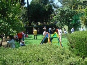 Zona de juegos infantiles, fuentes, porches……